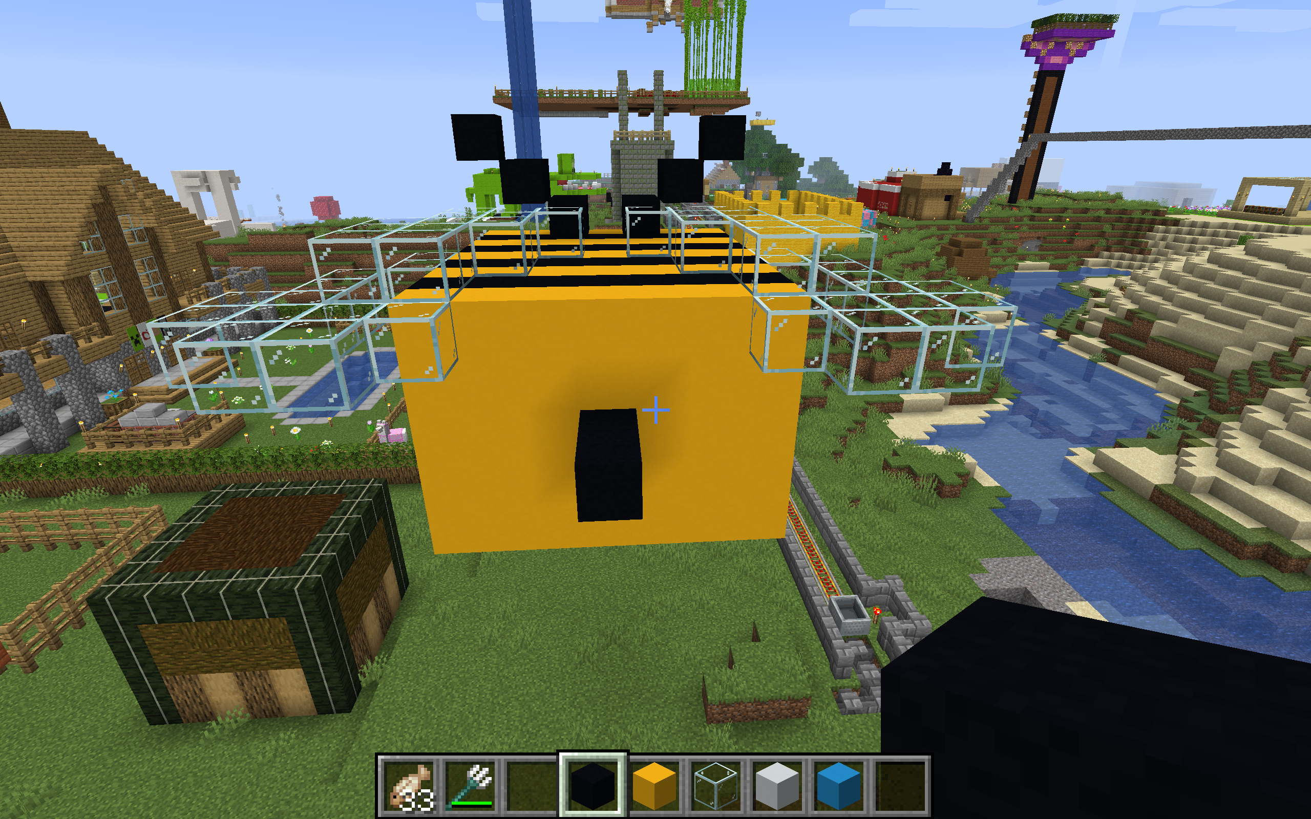 2 houses built in central Cube Town – mushroom and treehouse.